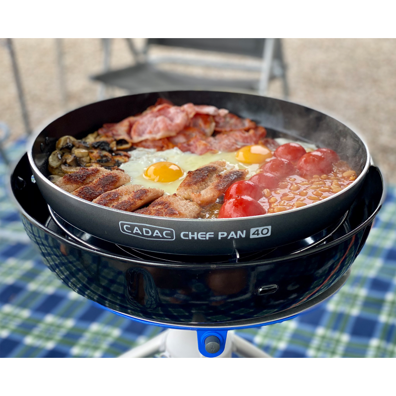Chef Tava, örn. Citi Chef 40 ve Grillo Chef Gazlı Barbekü. GreenGrill seramik kaplama temizlemeyi kolaylaştırır ve paella, risotto, makarna yemekleri, geleneksel kahvaltılar vb. hazırlamak için idealdir. Chef Pan'ı CADAC barbekünüzle kullanmak için, tencere standını yağ tavasının içine sağlam bir şekilde yerleştirin ve Chef Pan'ı ortasına yerleştirin.